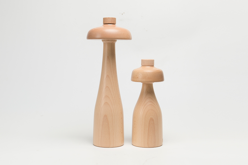 灯的整体使得旋钮开关使用方便而不唐突。倒置的碗的形状很适合用来当作灯罩。碗型的表面就会自然地展现出漂亮的木纹。连续的原木木纹会促使人们不自觉