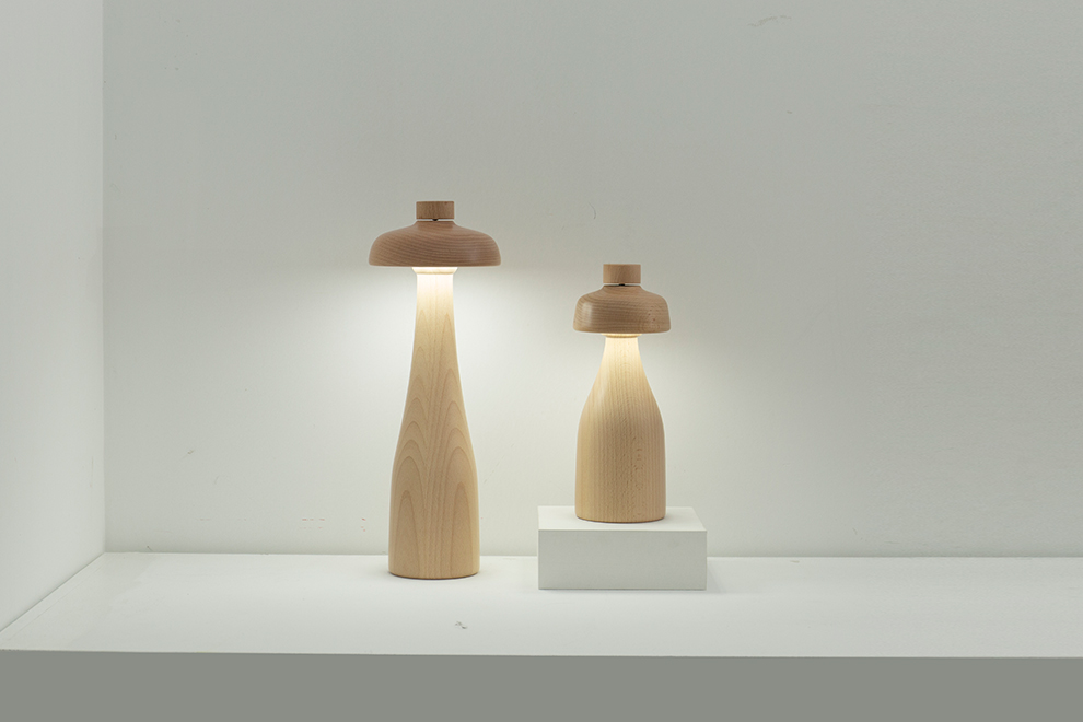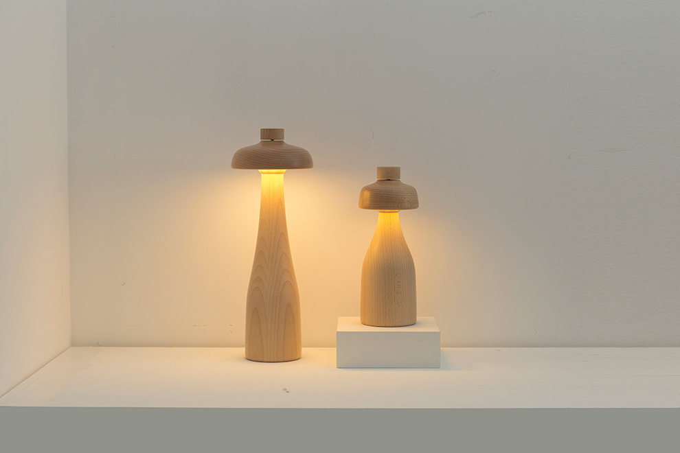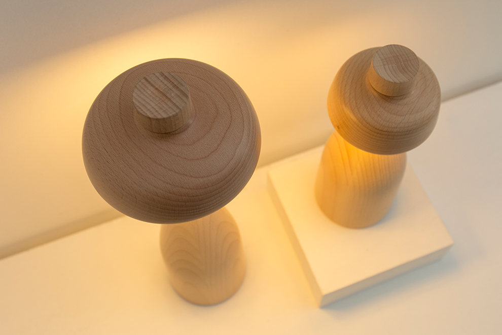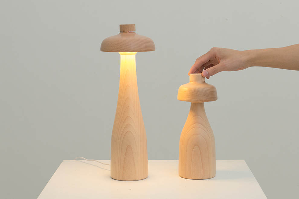 将调光开关融入整体造型,使它成为一个倒置的碗。调光器放置在台灯的顶部操作是很方便的,整体的木材质也会自然地引导人们去触摸它,将调光器融入到台