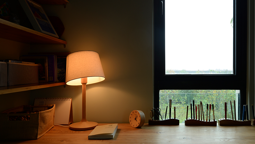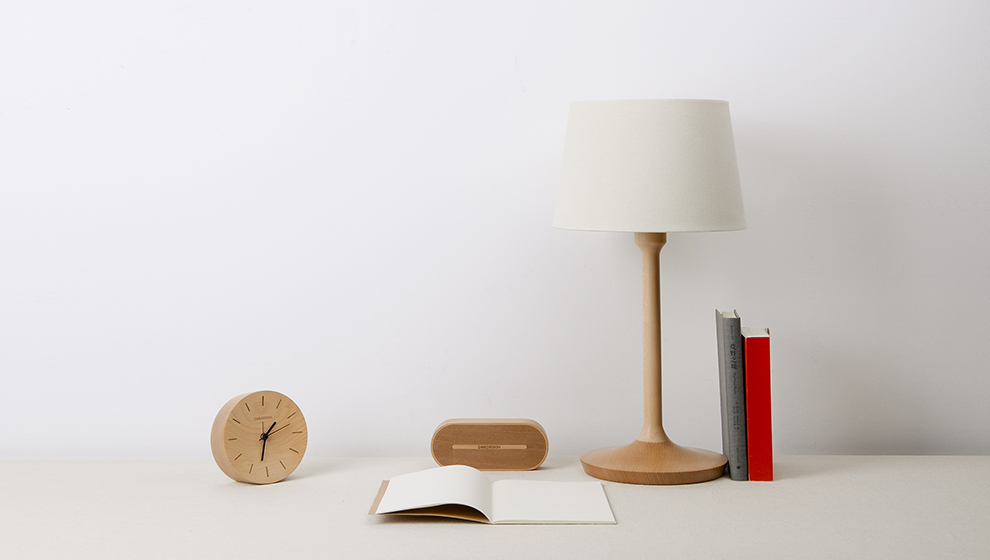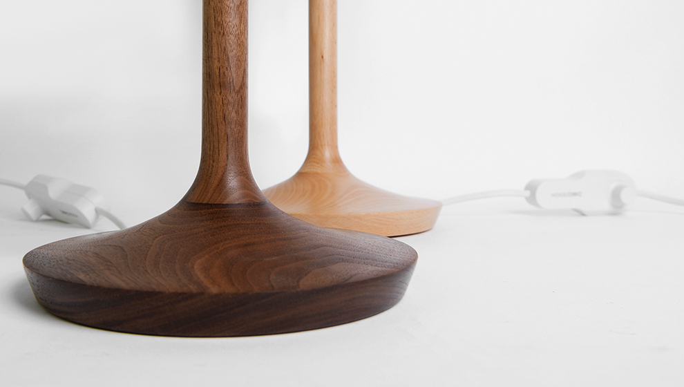 我一直认为产品也有生命。这款灯的设计我采用了线条的连续性将灯柱与灯座连为一体。灯的底座在灯光的反射下木纹更为清晰的展现。灯体紧凑而时尚。